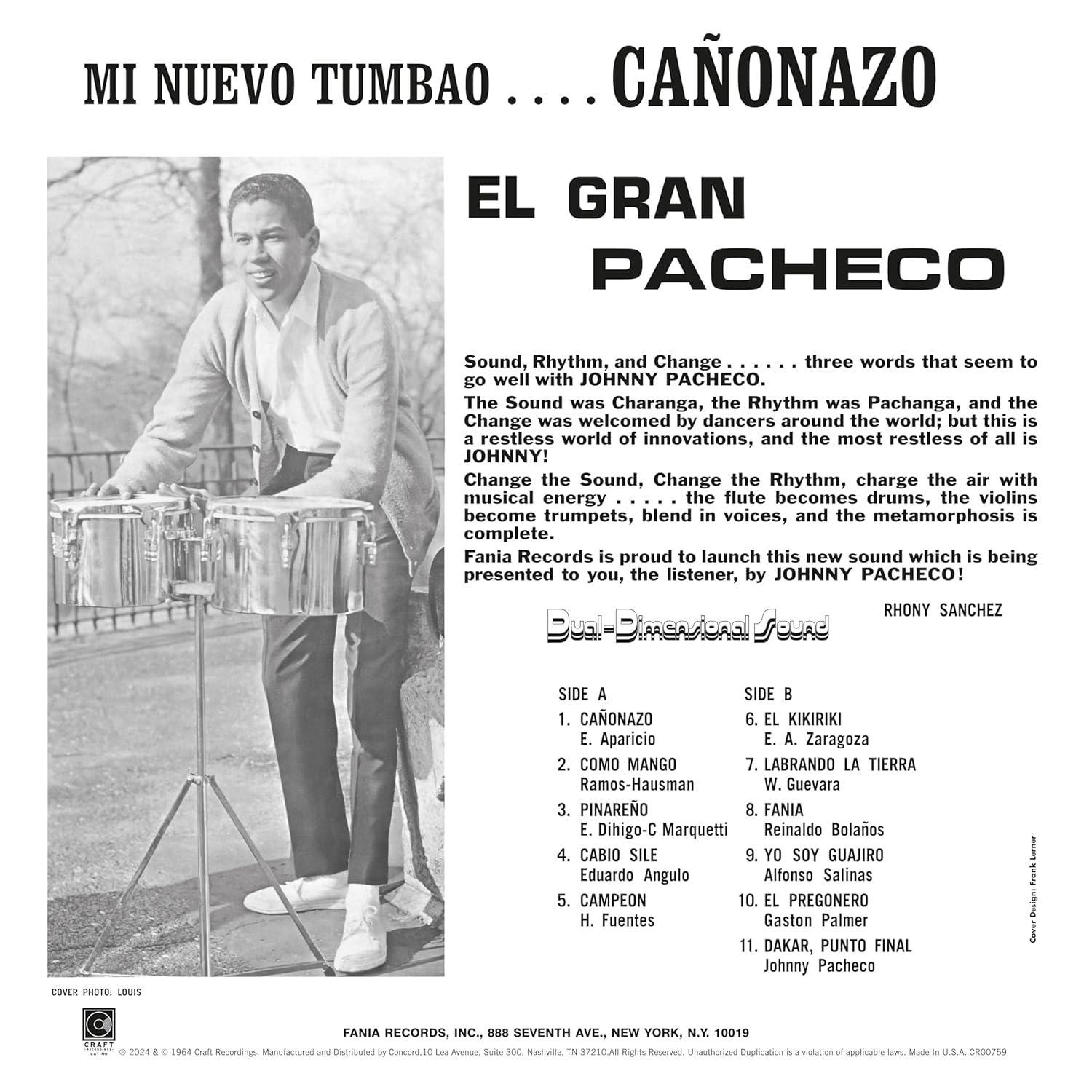 Artiste phare et co-fondateur de Fania Records, Johnny Pacheco publie « Cañonazo », la toute première sortie discographique de Fania, en 1964. Sous l’emblème Pacheco y su Nuevo Tumbao, le percussionniste offre une sélection de standards populaires cubains des années 1950 et 1960, dont « Fania », une reprise de « Fanía (Funché) » popularisée par les Estrellas de Chocolate, qui donnera son nom au label étendard de la musique latine.