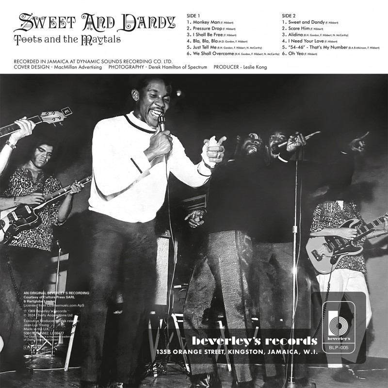 Toots & the Maytals, formé par Toots Hibbert avec Jerry McCarthy et Raleigh Gordon, a été découvert par Leslie Kong. Leur album Sweet And Dandy, inclus dans le film emblématique The Harder They Come (1972), a propulsé le groupe au rang d’icône du reggae grâce à des titres comme « Pressure Drop ».